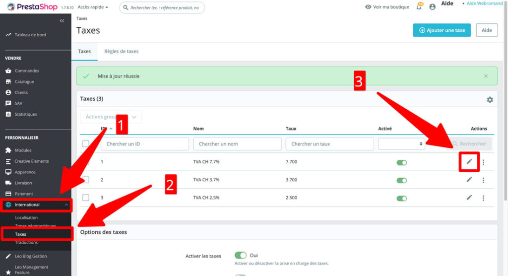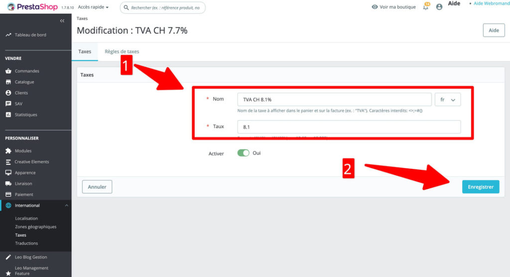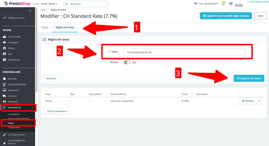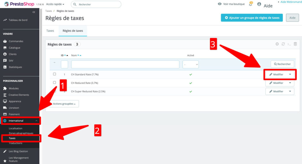 Modification des taux TVA dans Prestashop