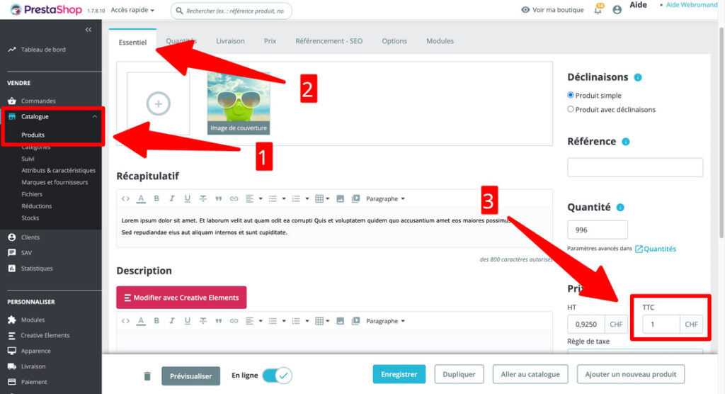 Si vous ne souhaitez pas répercuter la hausse de TVA sur vos prix finaux, il faut modifier le prix TTC de l’ensemble de votre catalogue produit car le prix HT (Hors Taxe) restera inchangé après le changement des taux de TVA.
